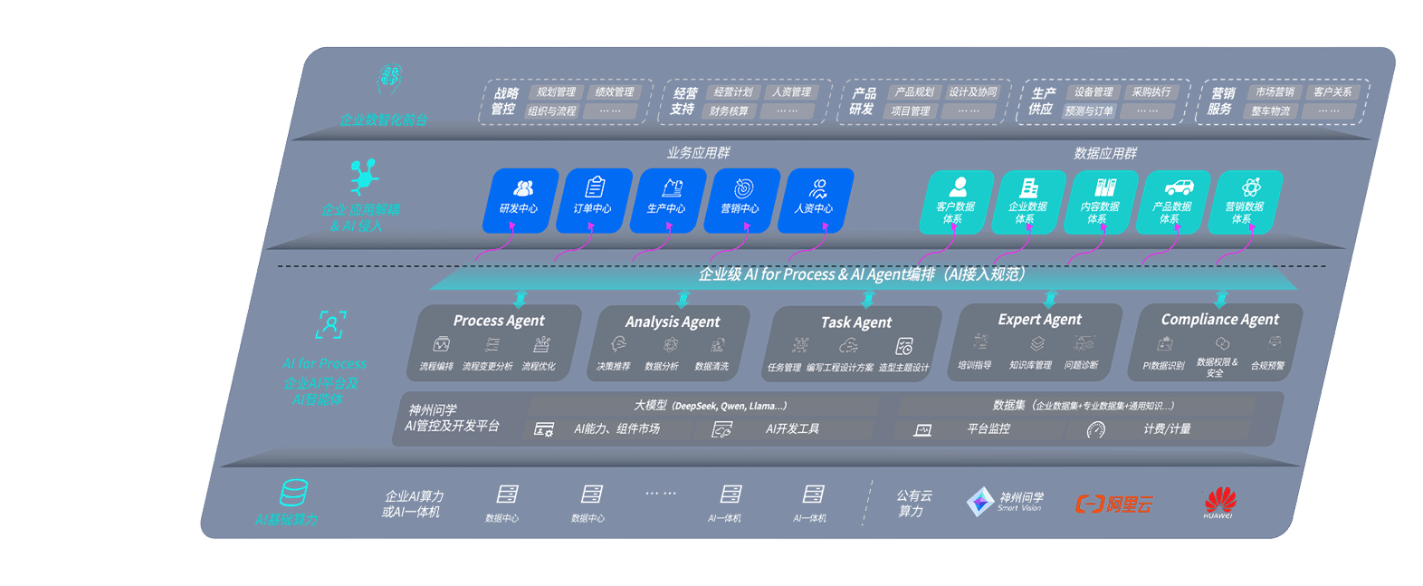 新时代问学智车解决方案是一套基于AI技术的汽车行业智能化系统,,覆盖从底层算力到顶层AI应用的全栈方案。。。。方案由算力层、、、模型层和应用层组成:算力层,,,,方案支持多种一体机配置,,,,具备云端灵活部署、、、、多云适配以及动态优化计算资源的能力;模型层,,新时代问学平台版提供了企业级AI应用一站式构建与管理平台,,,,支持基于后训练强化技术的汽车企业专属模型的训练、、评测和运营;应用层,,新时代问学DeepSeek版提供包括超级员工、、智能招采、、、、智能营销、、、智能客服、、、AI for BI等一系列解决方案,,可助力汽车行业实现数字化转型,,,,让管理更智能、、响应更敏捷。。。。